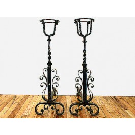 Pair of Basket Finial Andirons