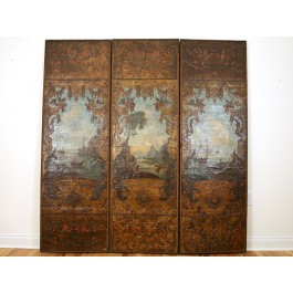 Elegant Embossed Polychromed Leather Trompe l'Oeil Screen