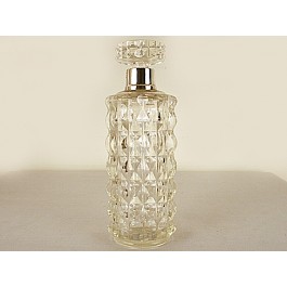 Round Cut Glass Decanter with Sterling Silver Rim