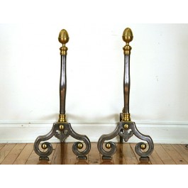 Pair of Cast Steel and Brass Andirons with Acorn Finials