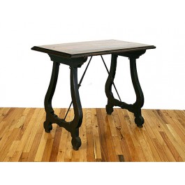 Walnut and Ivory Inlaid Table with Iron Stretchers
