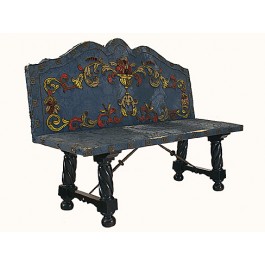 Walnut and Upholstered Hall Bench with Iron Stretcher
