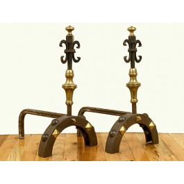Pair of Iron and Brass Andirons