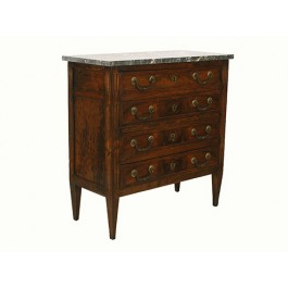 Carved Walnut Marble Top 4-Drawer Petite Commode