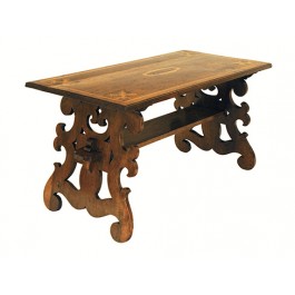 Walnut and Inaid Trestle-Form Coffee Table