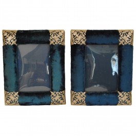 Pair of Turquoise Velvet Frames with Silver Filigree Detail