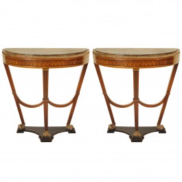 Pair of Inlaid and Giltwood, Marble-Top Consoles