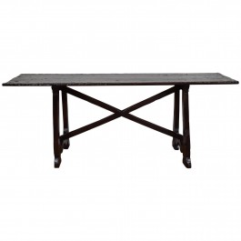 Walnut Trestle Table with Wooden Stretcher