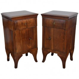 Pair of 1-Drawer, 1-Door Walnut Veneered Commodini