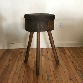 Round Walnut and Iron Butcher Block Table