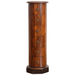Walnut and Ebonized 6-Drawer Column-Form Pedestal