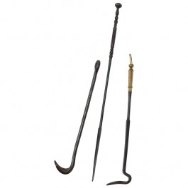 Assembled Set of 3 Wrought Iron and Brass Fire Tools