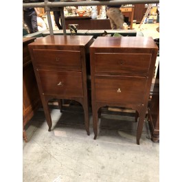 Pair of 1-Drawer, 1-Door Walnut Bedside Commodes
