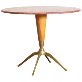 Brass, Maple, and Marble-Top Table