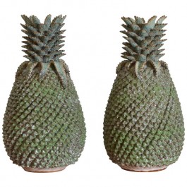 Large Pair of Faded Turquoise Glazed Terra Cotta Pineapple Urns