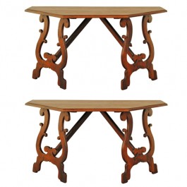 Large Pair of Walnut Console Tables, Octagonal Dining Table