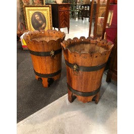 Pair of Oak Planters with Iron Banding