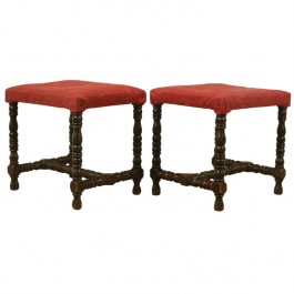 Pair of Oak and Upholstered Benches