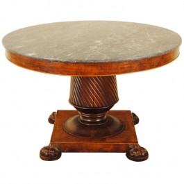 Walnut, Boxwood, and Maple Large Center Table with Marble Top